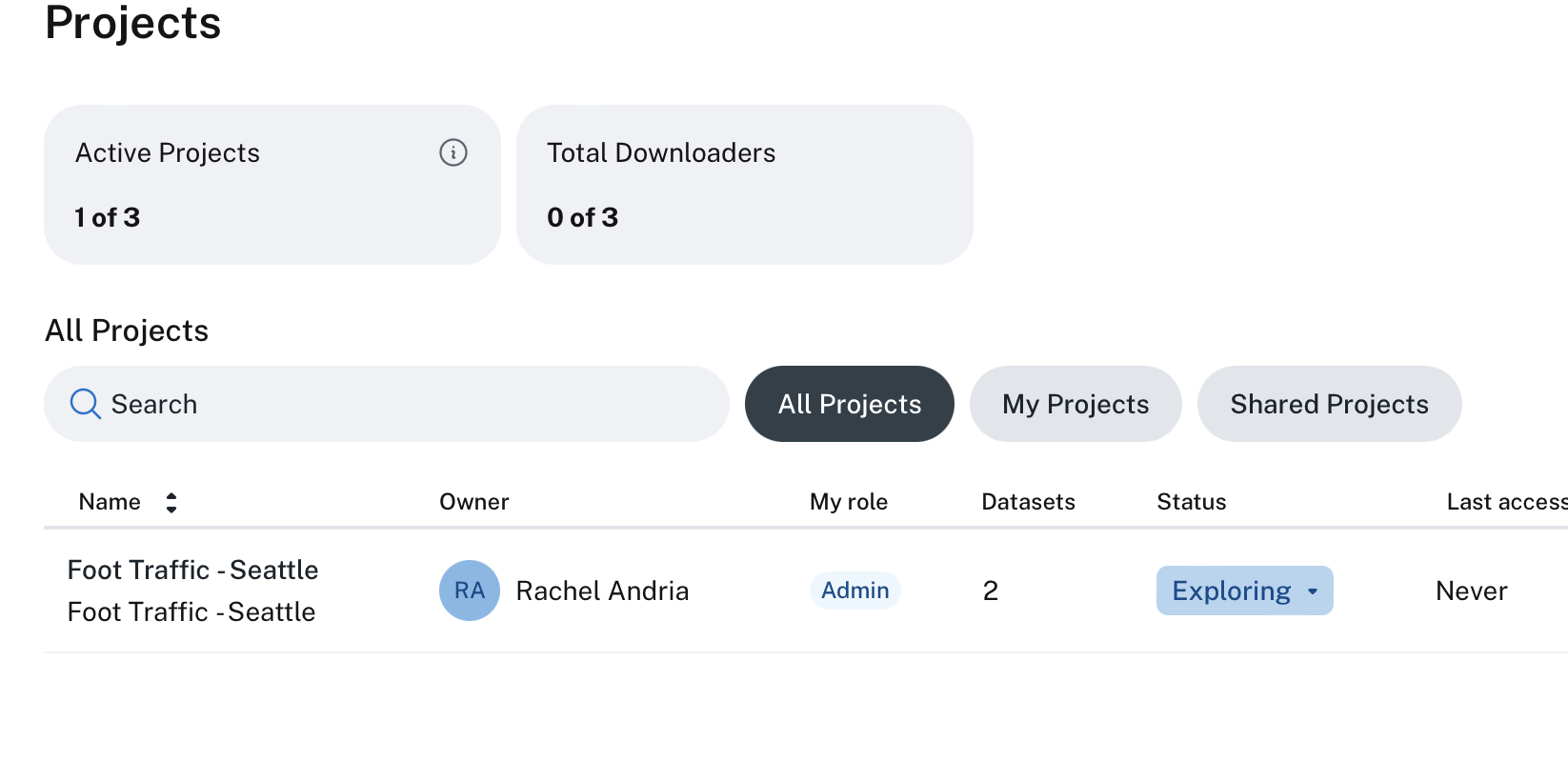 I created a project and am trying to view the 2 datasets I generated to go into the project. However, I keep getting an error: